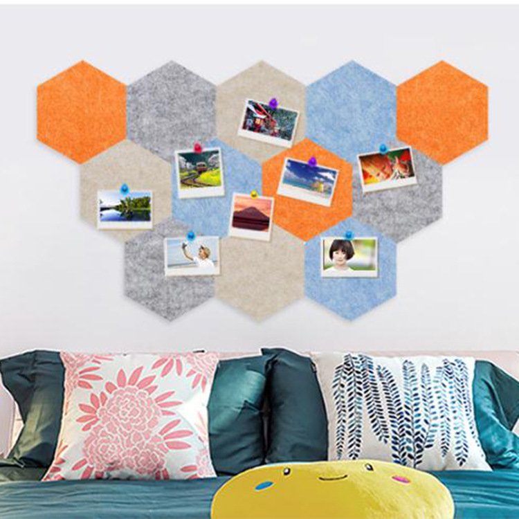 Lintas batas heksagonal serat poliester menyerap suara papan merasa papan pesan taman kanak-kanak dekorasi tiga dimensi latar belakang papan tampilan