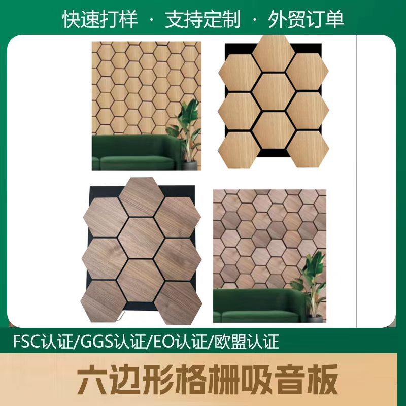 AKU cross-border strip kayu heksagonal, papan menyerap suara, pengurang kebisingan bebas sambungan ruang makan kamar tidur latar belakang