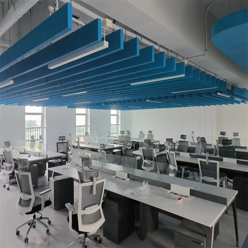 Panel akustik gantung peredam suara grosir untuk restoran dan klub, peredam suara dekoratif dari fiberglass untuk langit-langit.