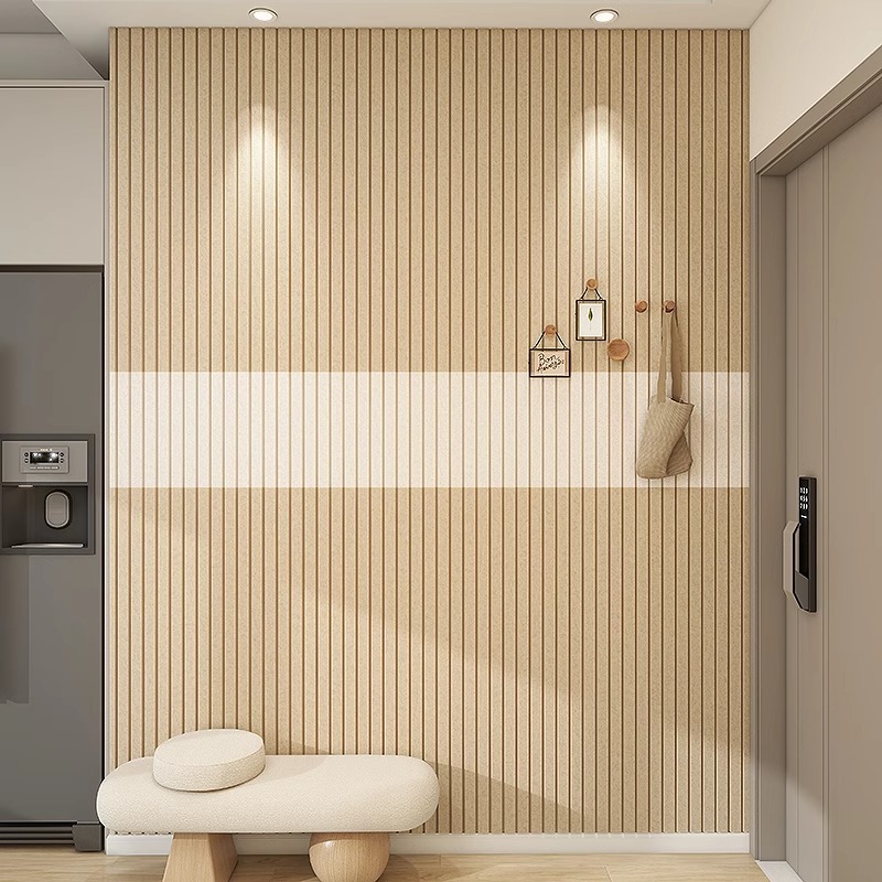 Papan Penyerap Suara Strip Kayu Serat Poliester Persegi Papan Penyerap Suara Dinding Ruang Pertemuan Papan Isolasi Suara Dinding Latar Belakang Ramah Lingkungan Bebas Cat