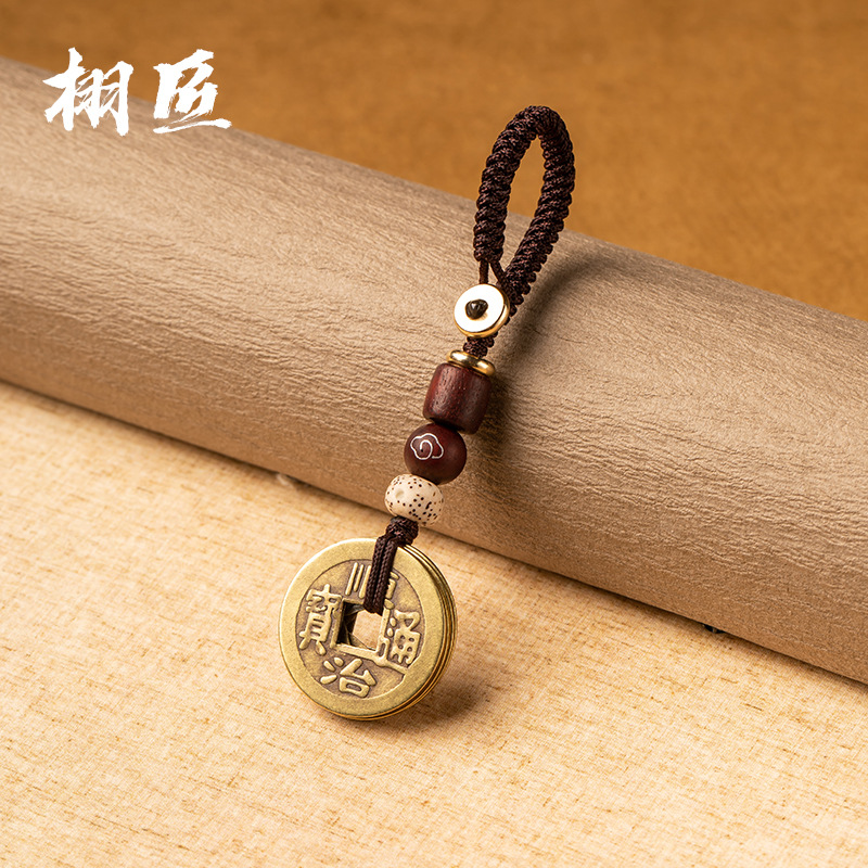 Gantungan kunci mobil kuningan murni, gantungan kunci mobil kuningan, gantungan kunci mobil aman, hadiah kreatif keberuntungan untuk pria dan wanita