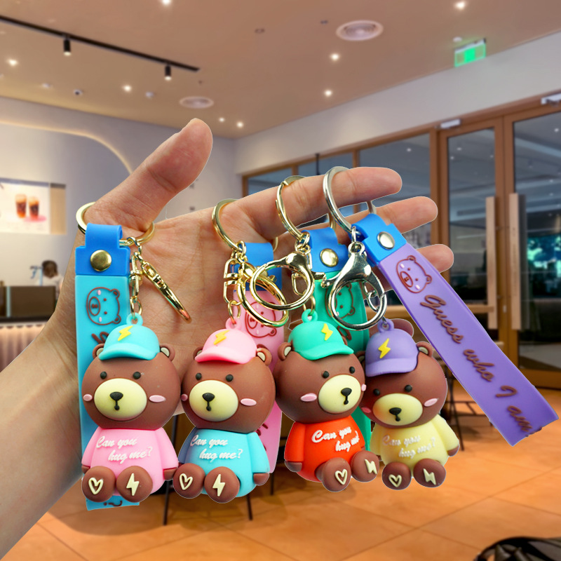 Liontin gantungan kunci beruang cokelat besar, ransel modis pria dan wanita, hadiah kecil ornamen mobil
