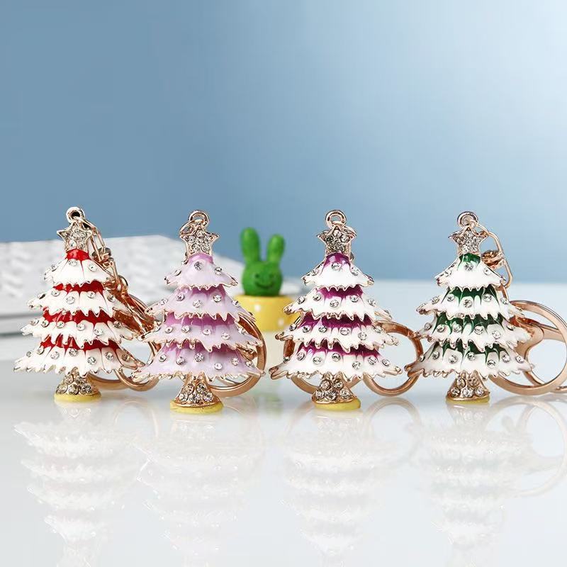 Crossborder Grosir Pohon Natal Gantungan Kunci Mobil Natal Hadiah Kecil Logam Berlian Imitasi Gantungan Kunci Ransel Aksesoris