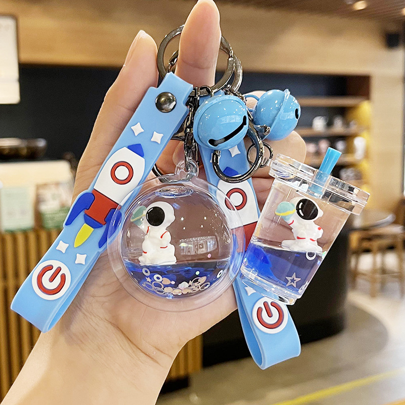 Planet astronot gantungan kunci pasir hisap anak-anak, gantungan kunci tas sekolah liontin mobil pasir lucu kreatif, hadiah kecil yang indah