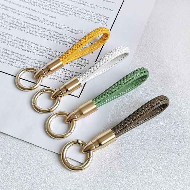 Gantungan kunci wanita simpel bahan Aloi, gantungan kunci putar peluru baru, ornamen tali kulit lucu