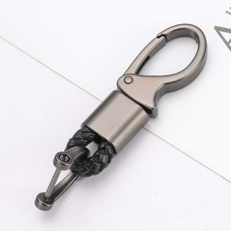 Gantungan kunci mobil, gantungan kunci mobil tali tenun logam kelas atas liontin pria dan wanita pasangan Microfiber kulit tahan aus aksesoris grosir