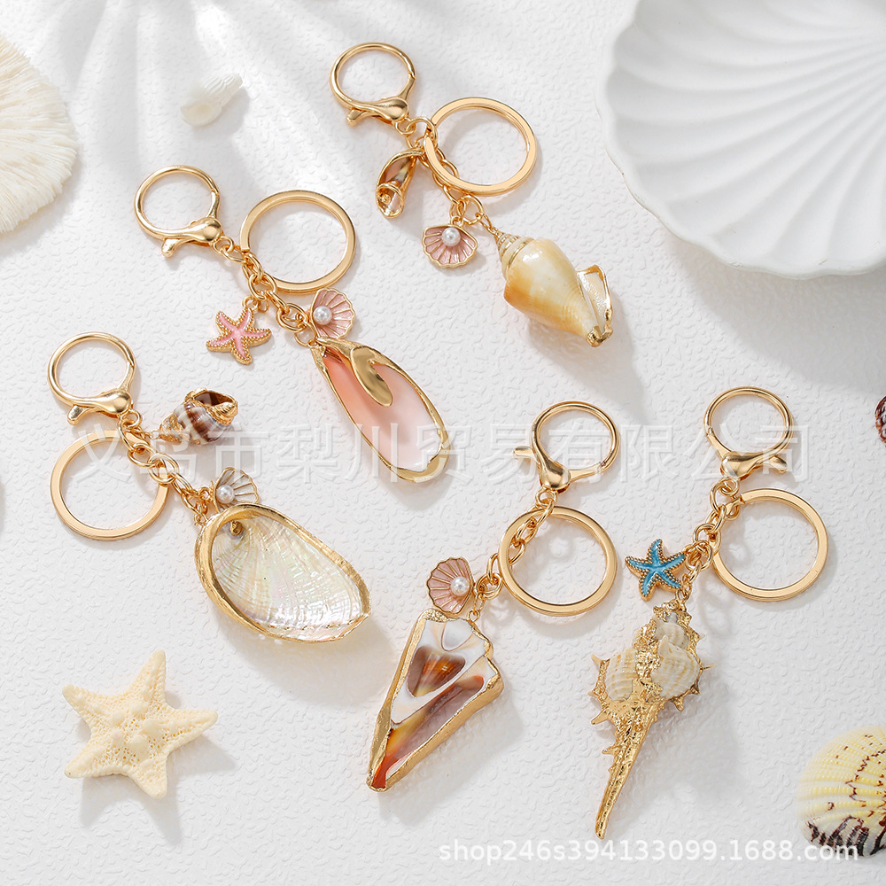 Amazon Cross-Border Hadiah Kreatif Kerang Alami Gantungan Kunci Keong Liburan Pantai Liontin Kerang Keong