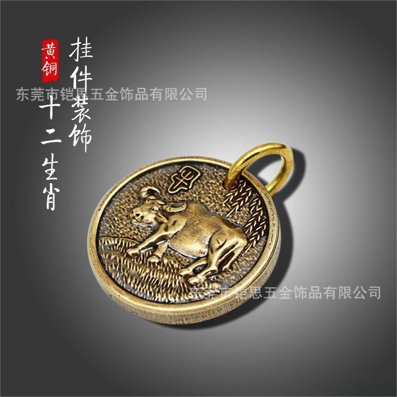Gantungan kunci kuningan, rantai tembaga murni buatan tangan dua belas merek zodiak, liontin tas sekolah mobil tahun lahir kreatif