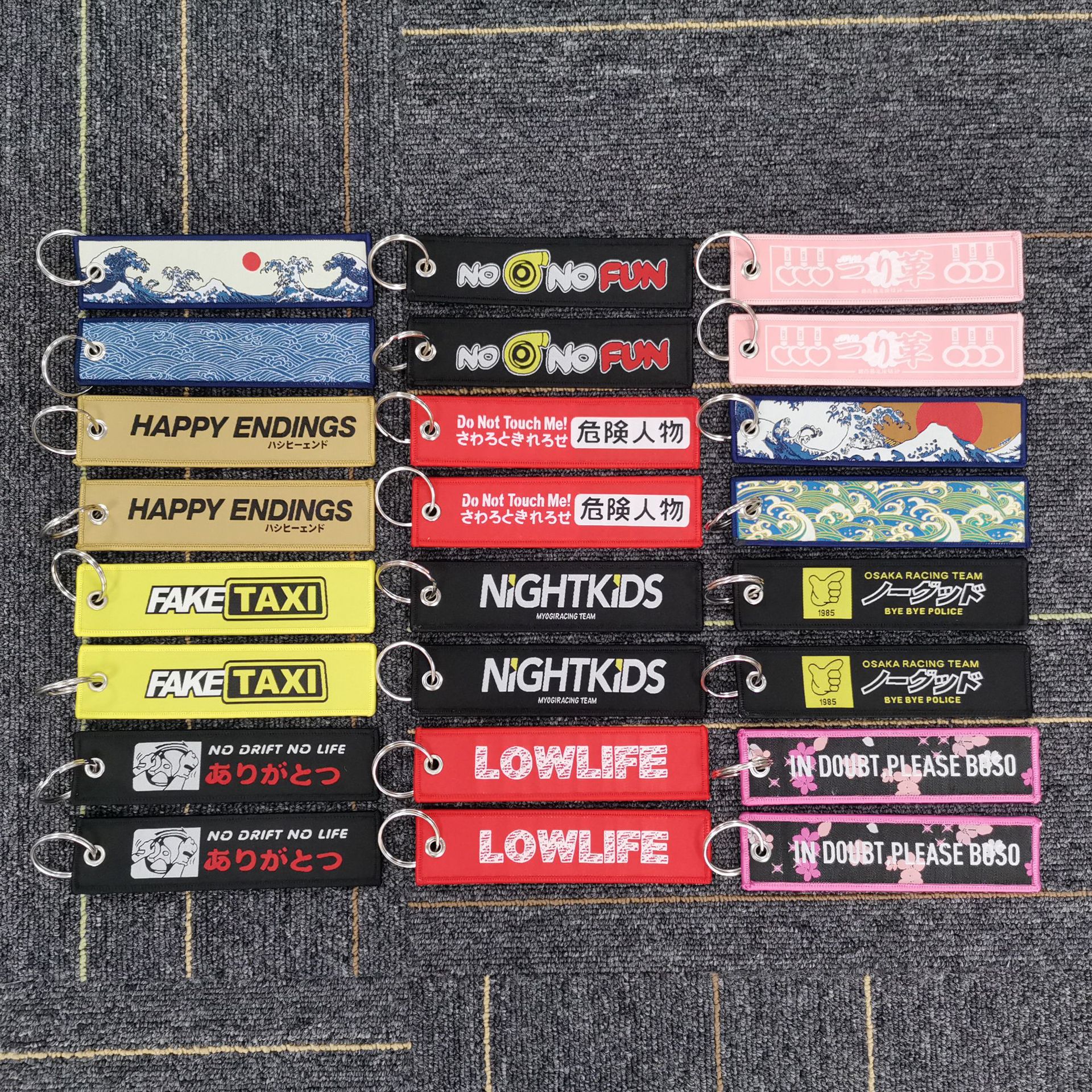 Liontin kunci JDM modifikasi mobil gantungan kunci bordir tekstil kanvas gantungan kunci kain pendek gantungan kunci Fujihara tahu