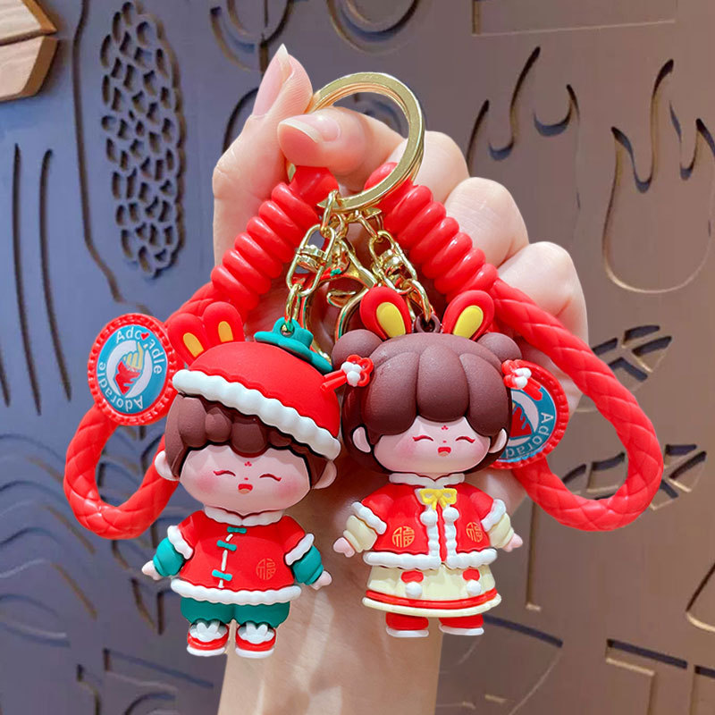 Gantungan kunci mobil boneka Chihuahua kreatif, gantungan kunci mobil kartun lucu ornamen tas pasangan boneka liontin