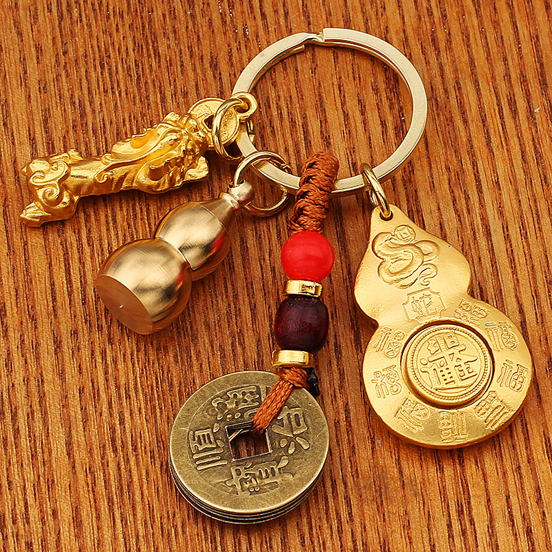 Cinnabar liontin kunci labu tembaga, liontin mobil pribadi pria dan wanita kreatif Lima Kaisar