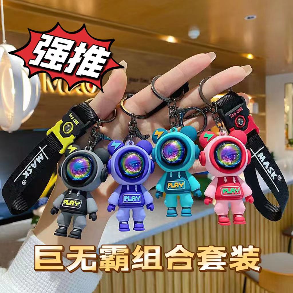 Gantungan kunci beruang petir, gantungan kunci tas mobil liontin boneka pasangan kartun lucu gantungan kunci ornamen hadiah kecil grosir