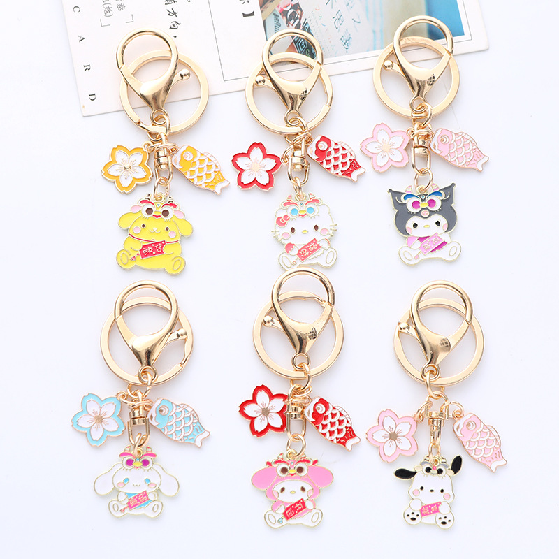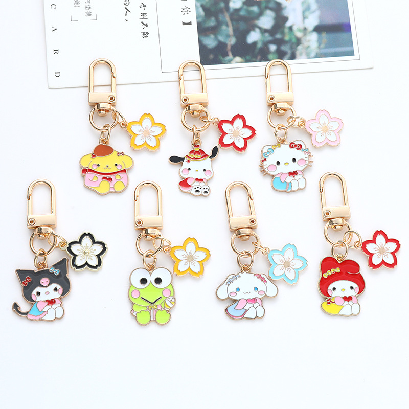 Kartun Sanrio gantungan kunci boneka liontin mobil logam campuran gantungan kunci aksesoris tas ornamen hadiah kecil grosir