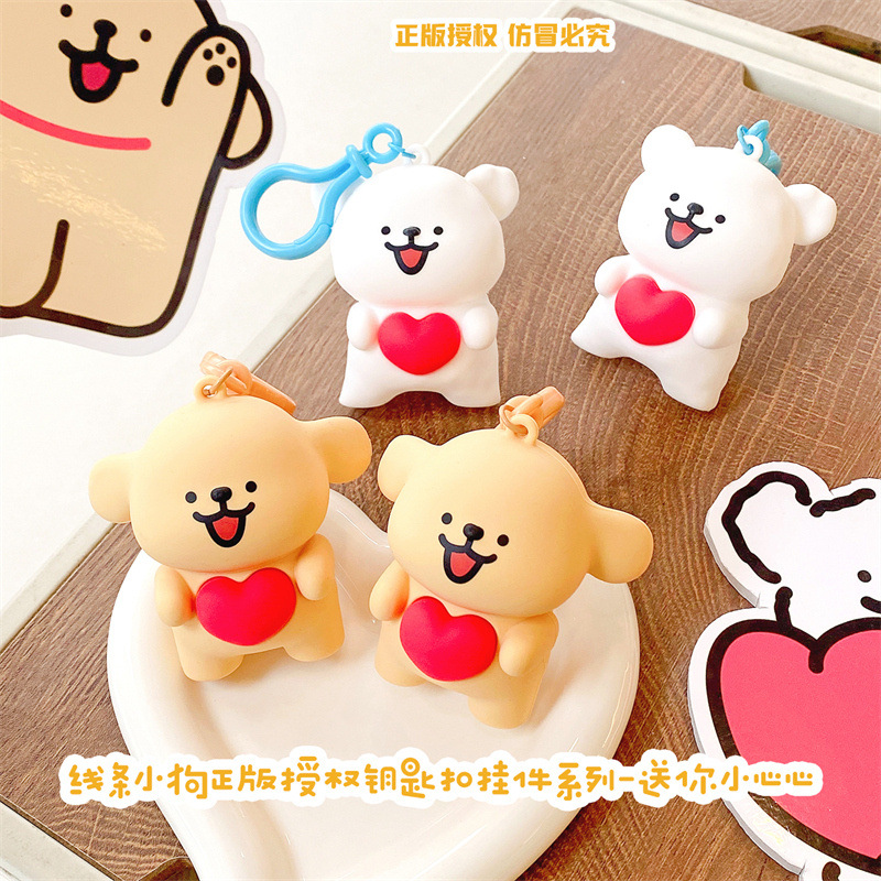 Rantai kunci mobil ornamen tas sekolah pasangan perempuan liontin kecil gantungan kunci seri hati hati-hati anak anjing garis asli