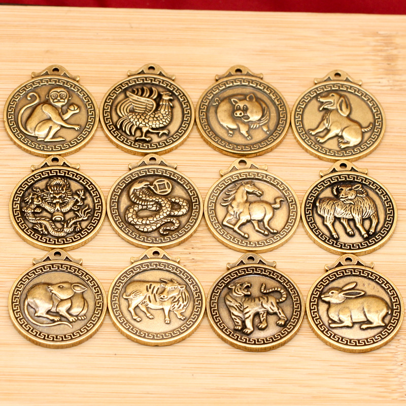 Liontin kecil interior mobil tas gantung gantungan kunci kartu berkat tahun zodiak kuningan grosir