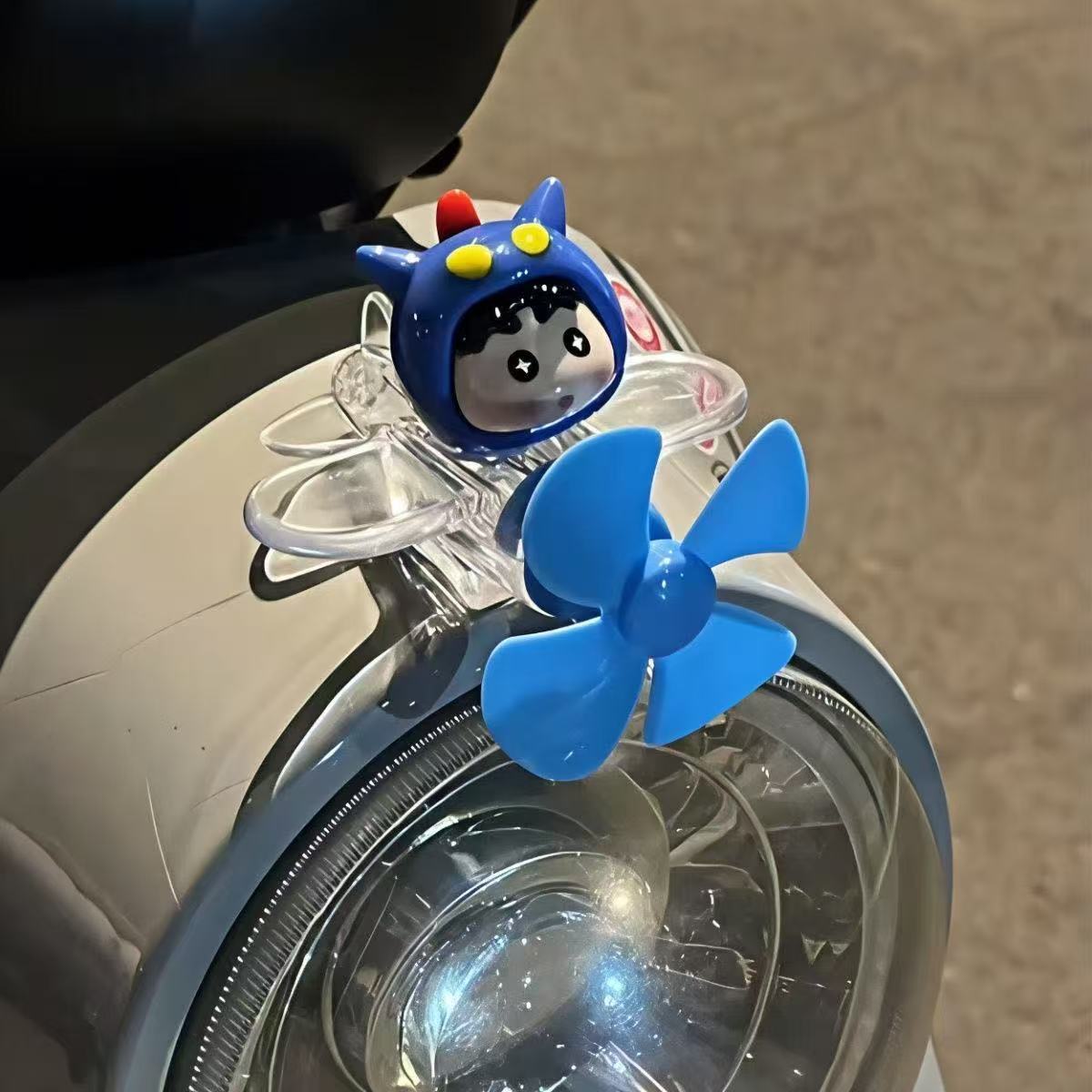 Crayon Shin-chan Wind Light Emitting Pesawat Listrik Ornamen Sepeda Motor Pembangkit Listrik Tenaga Angin Rotary Mobil