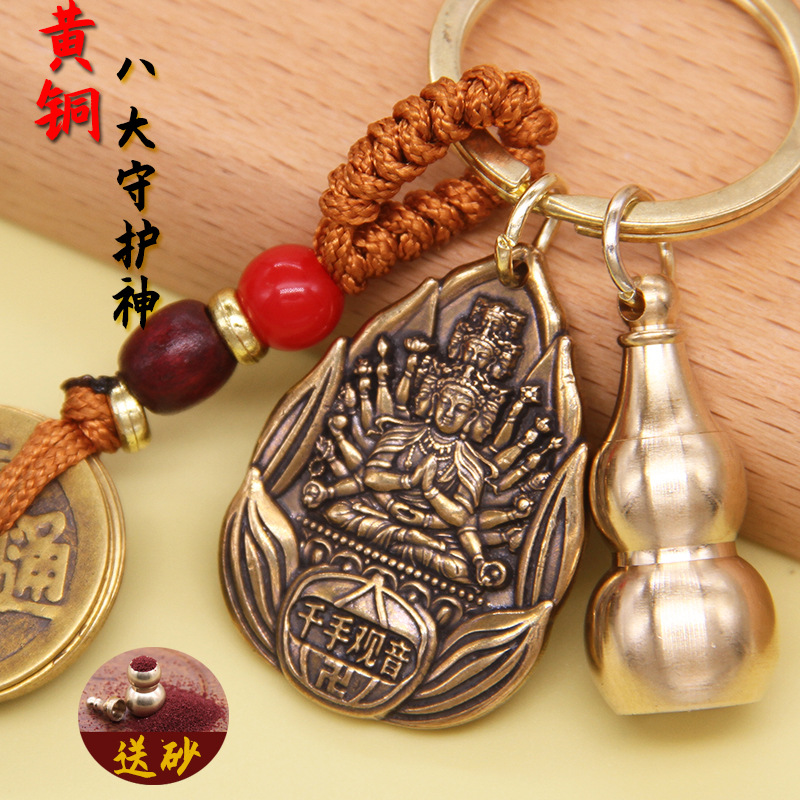 Aksesori liontin Dewa Penjaga kuningan delapan gantungan kunci mobil Pasangan gantungan kunci mobil kosong mengirim pasir tali kuning lima Aksesori uang Kaisar