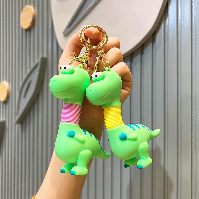 Liontin rantai kunci sudut dinosaurus kecil, kartun kreatif dapat ditarik tas liontin hadiah kecil
