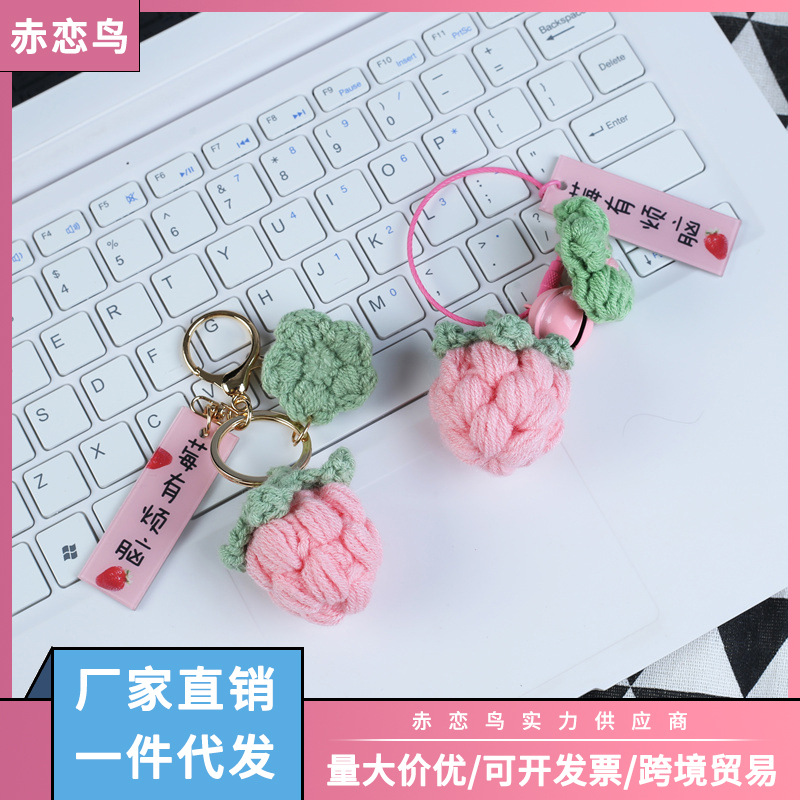 Gantungan kunci mobil rantai kunci mobil gantungan kunci rajut anyaman stroberi gantungan kunci boneka khawatir kartun Berry grosir