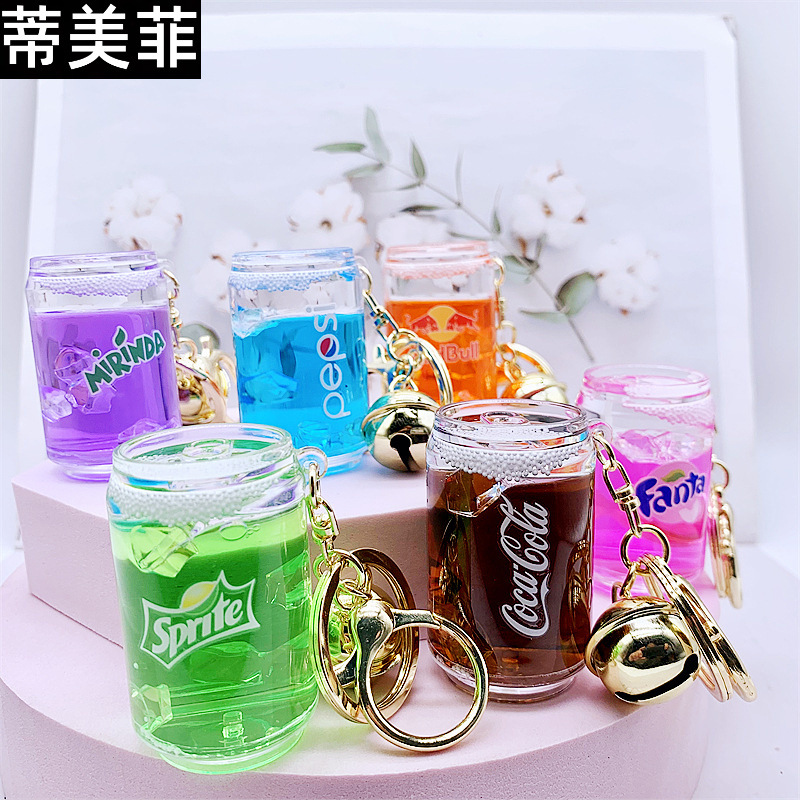 Botol es minuman cola perempuan, gantungan kunci hati indah liontin cair tas pasangan