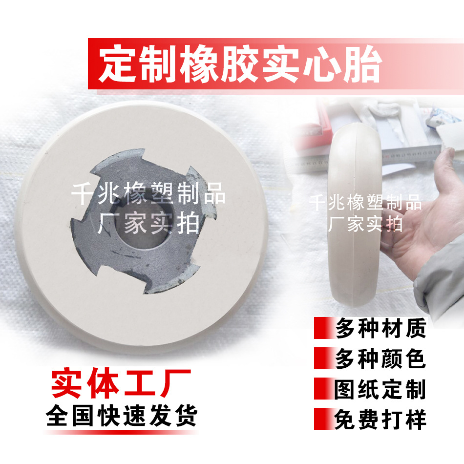 Pasokan langsung pabrik karet ban padat tahan aus roda karet putih roda karet industri ban padat dilapisi karet perangkat keras