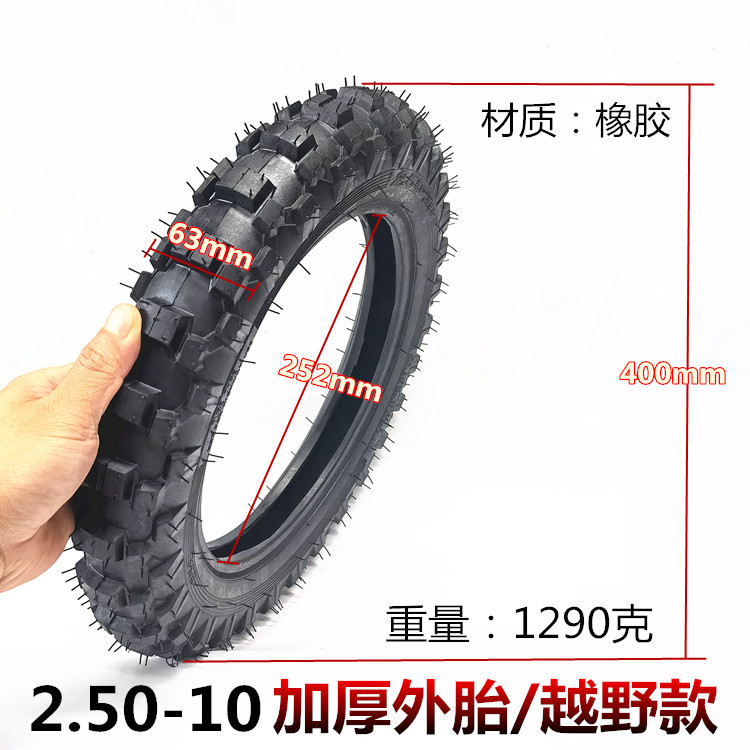 Ban dalam dan luar motor 14 inci 2.50-10 untuk off-road, ban tebal dengan katup lurus dan katup lengkung, ban dalam dan luar.