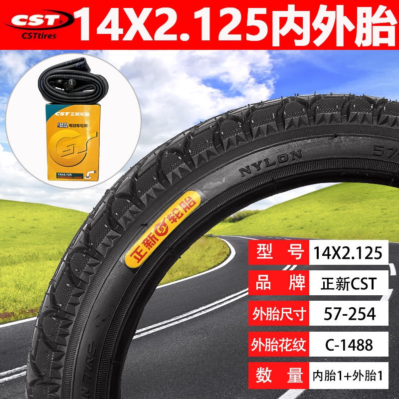 Ban Luar Kendaraan Listrik 14x2.125 Ban Dalam dan Luar 57-254 Ban Tubeless CST 14-inci Ban Pengganti untuk Berkendara