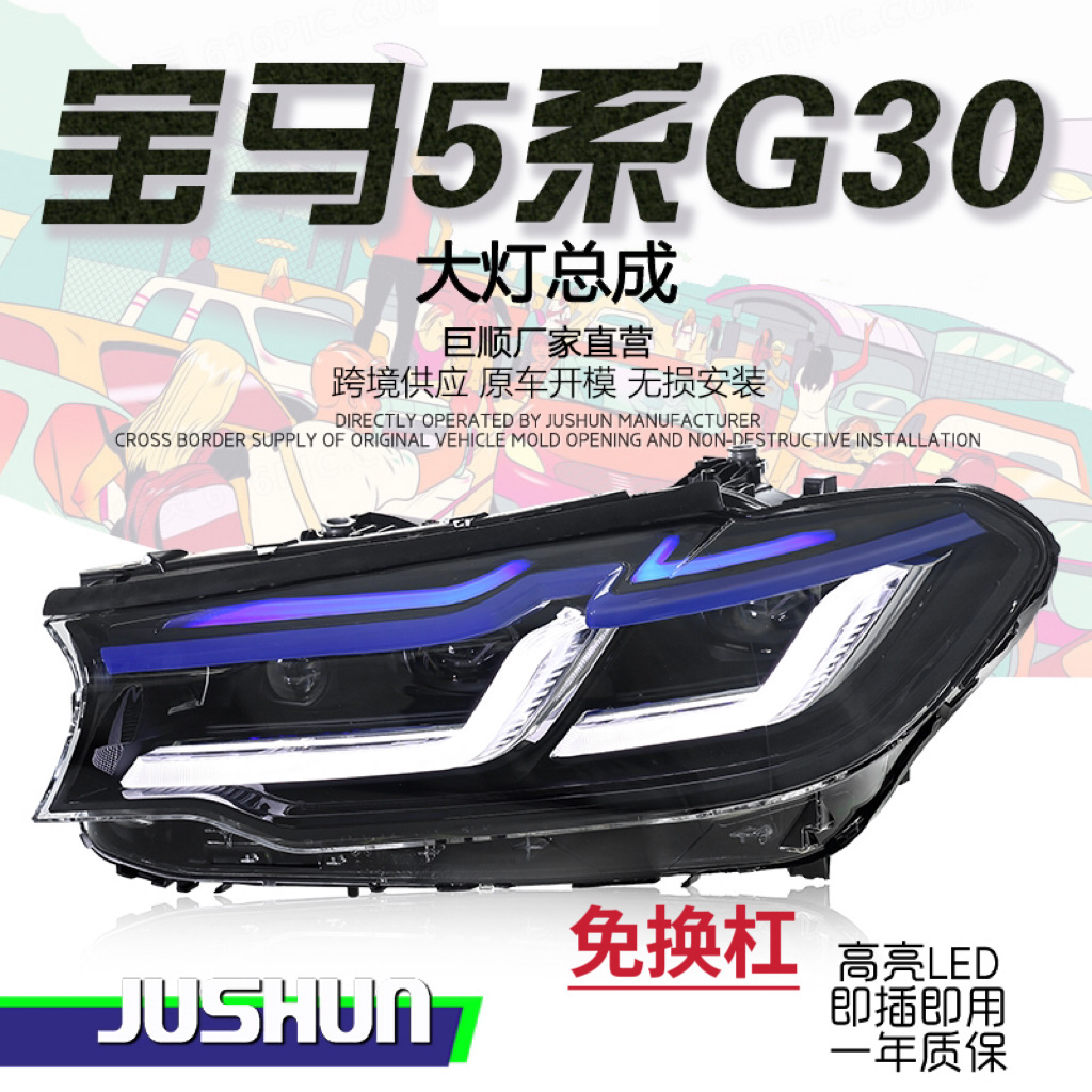 适用于18-20款宝马5系G30大灯总成改装雷霆款蓝眉LED日行转向透镜