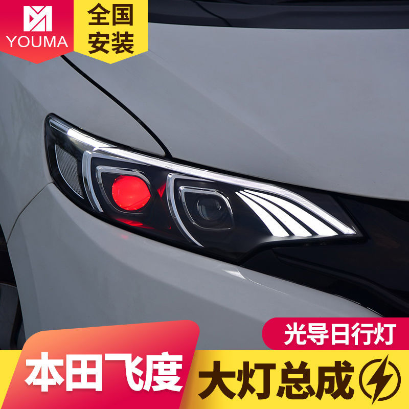 Didedikasikan untuk Honda baru fit rakitan lampu depan dimodifikasi LED berjalan siang hari lampu berjalan air lampu sein mata setan lensa