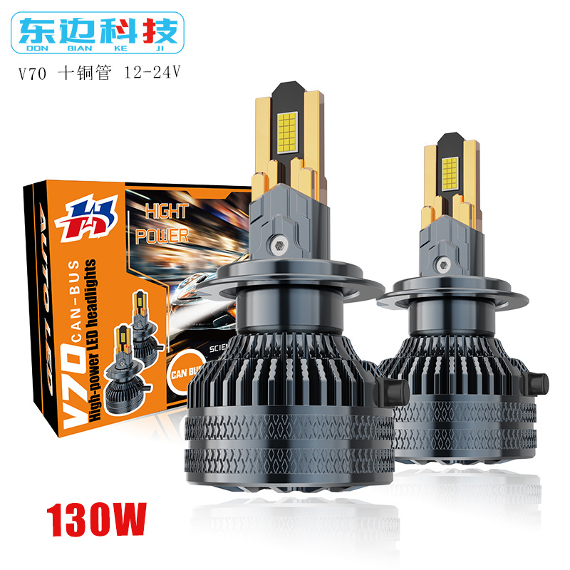 跨境新品V70汽车led大灯12-24V十铜管h4h7h1超高亮聚光前车灯改装