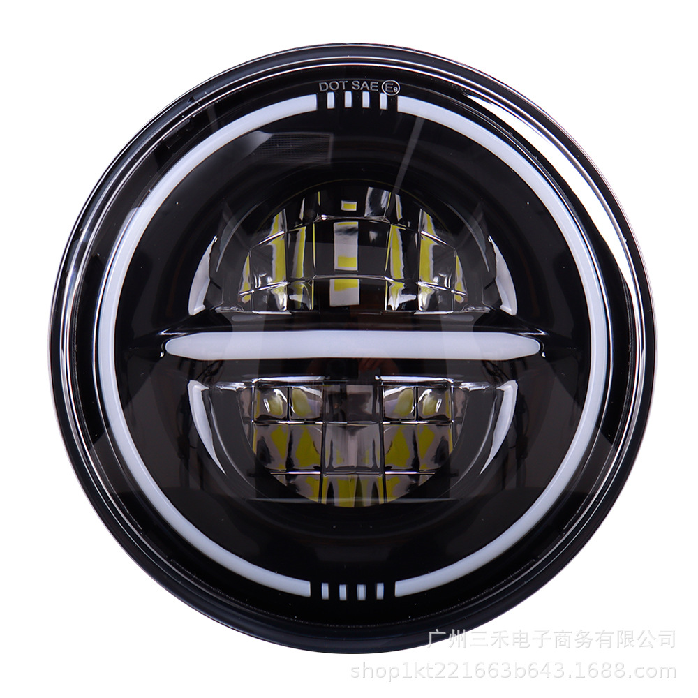 Lampu depan led sepeda motor Harley 7 inci, lampu depan mobil modifikasi off-road mata malaikat cahaya ganda putih kuning