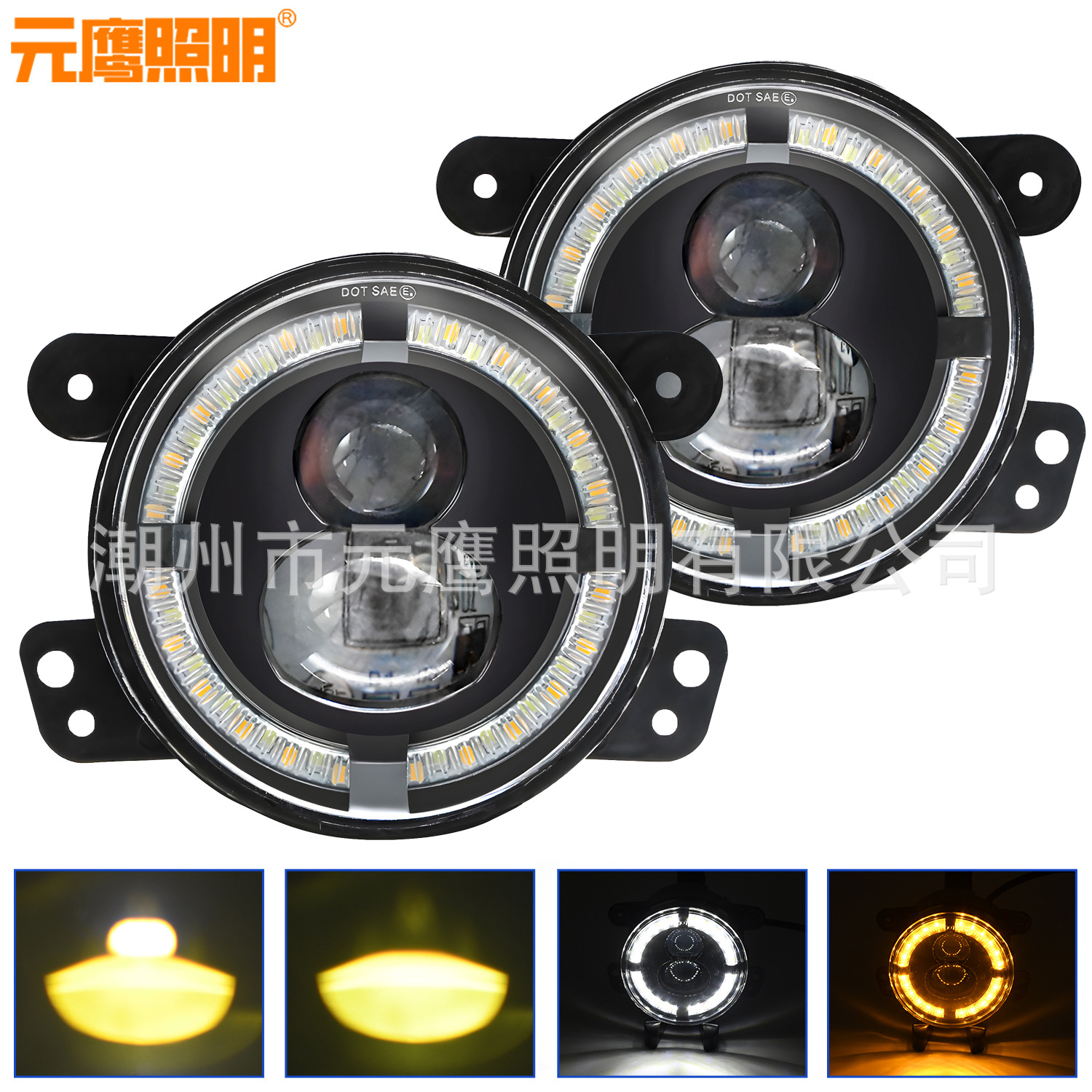 Lampu Depan LED 4 Inch Dua Warna LED Wrangler Lampu Depan Lampu Harian Modifikasi Lampu Depan Offroad Lintas Batas