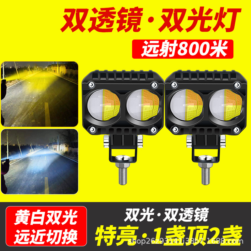 Lampu sorot Eksternal sepeda motor, kendaraan listrik sumber cahaya LED penerbangan aluminium 9-85v cermin transmisi tinggi dua warna kuning dan putih sorot