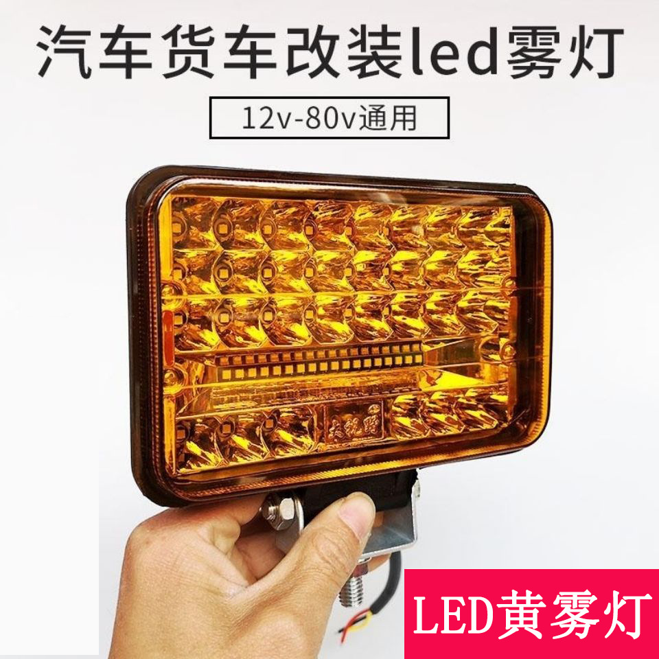 Lampu tembak truk LED pandangan besar cahaya kuning lampu kabut kuning tiga empat inci lima inci lampu persegi tujuh inci lampu sorot trem kendaraan Teknik