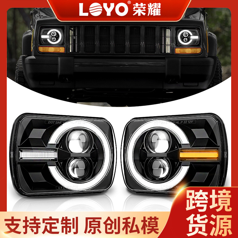 Amazon lampu depan mobil LED 7 inci lampu persegi mobil gembala truk 5X7 lampu depan mobil LED 7 inci lampu persegi