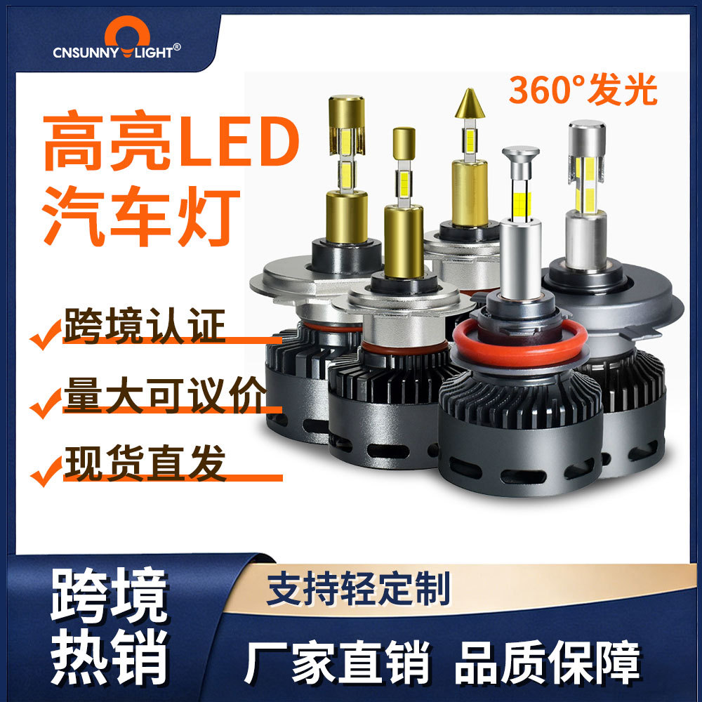 Lampu depan mobil LED 360 derajat lintas batas dengan emisi cahaya empat sisi berdaya tinggi 55W/65W lampu mobil LED kecerahan tinggi super terang