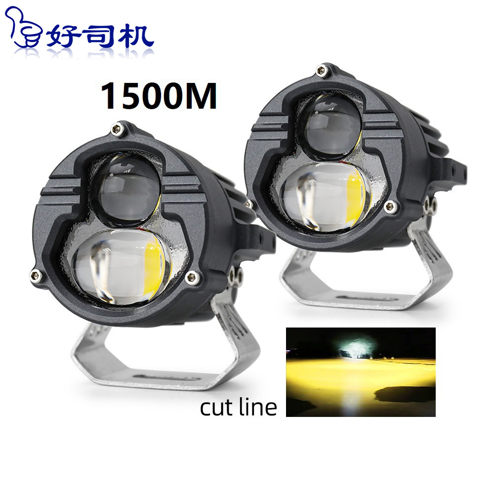 Lampu depan sepeda motor LED eksternal, lampu sorot mata malaikat grosir dengan bukaan kuning putih jauh dan dekat