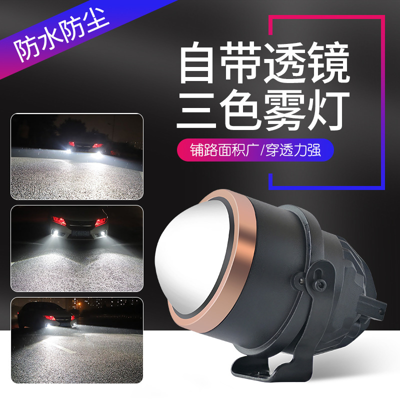 X5 lampu kabut LED mobil 3.0 inci, lampu depan lensa dua lampu jauh dan dekat terintegrasi tiga warna lampu kabut mobil