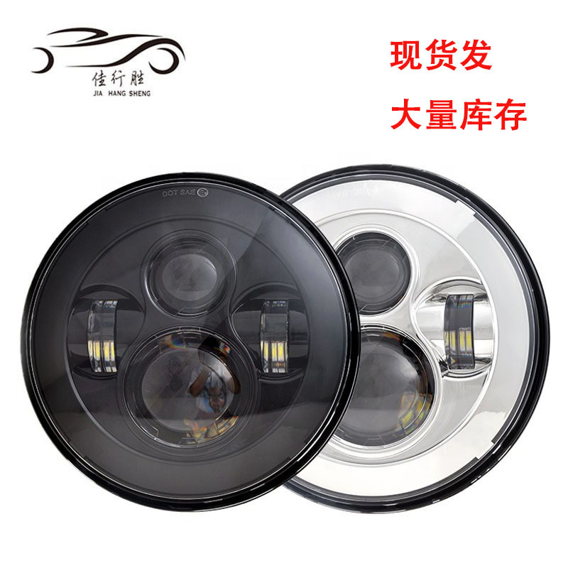 Lampu depan led mobil 7 inci Shepherd 4 manik-manik bulat hitam penuh perak Lampu Sorot sepeda motor Harley modifikasi