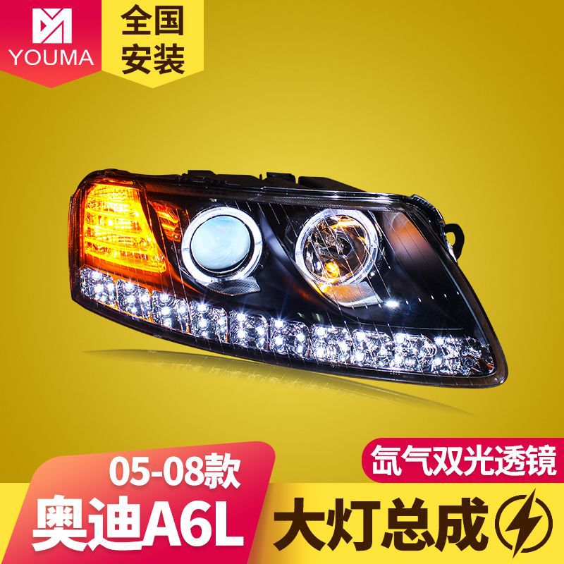 Khusus untuk Audi A6L rakitan lampu depan 05-08 Audi A6L dimodifikasi led lampu siang hari lensa lampu depan xenon