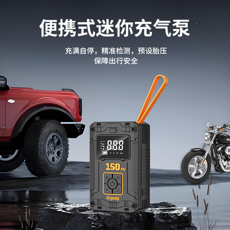 Pompa udara ban mobil mini portabel, pengisi daya harta karun kecil tanpa kabel display digital pompa udara untuk kendaraan listrik