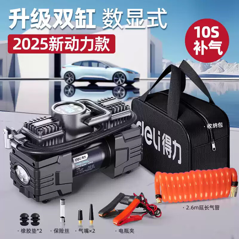 Deli Logam Dua Silinder Pompa Udara Mobil Portabel Ban Mobil Portabel Multifungsi 12V Plus