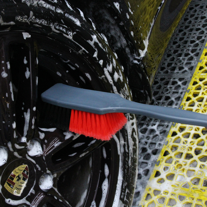 Perlengkapan pembersih mobil sikat ban khusus pembersih alat kecantikan wol kasar sikat roda ban mobil sikat pegangan pendek