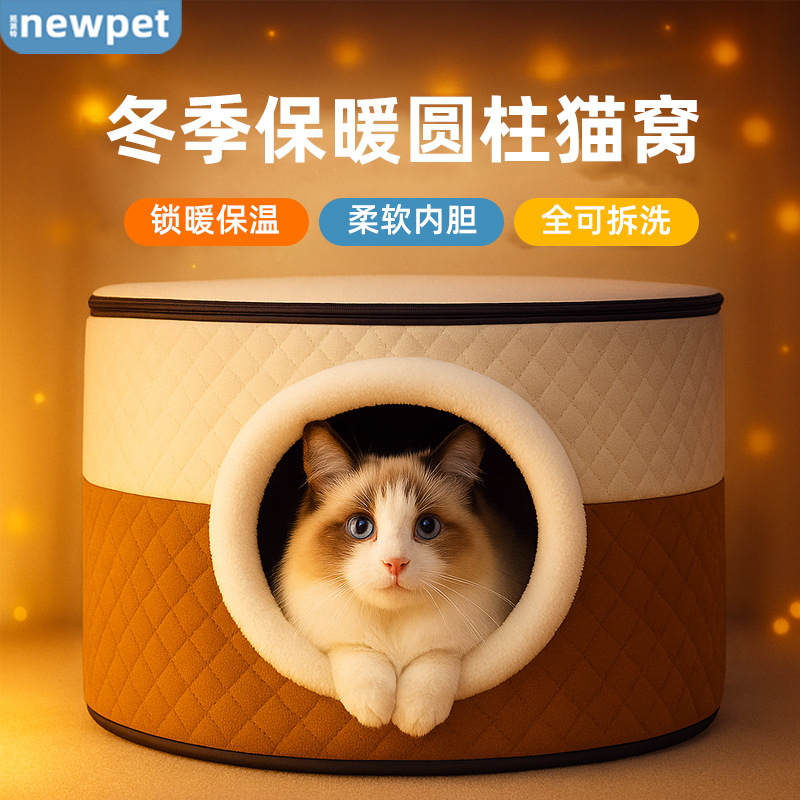 Sarang kucing silinder 2.0 corduroy musim dingin Semua tipe alas kucing desain dapat dicuci sarang kucing hewan peliharaan