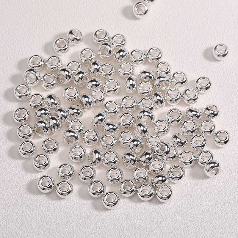 Diy aksesoris perhiasan perak cerah lubang besar manik-manik bulat cincin manik-manik roda tali merah woven Gelang kalung longgar bahan manik-manik