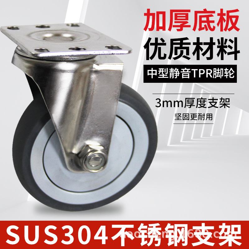 TPR roda gila Mobil universal, penyimpanan dingin roda sedang anti karat baja tahan karat 304