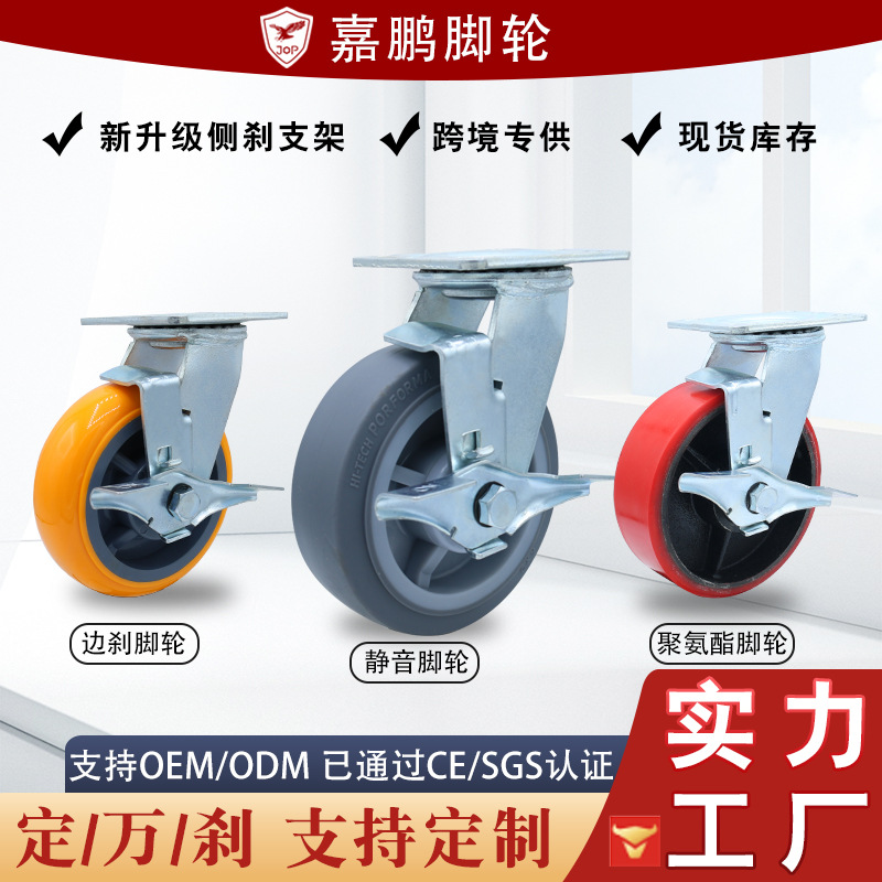 Kastor Rem Sisi Tugas Berat Industri 4 Inci 5 Inci 6 Inci 8 Inci Alat Roda Rem Poliuretan Roda Rem Samping Universal
