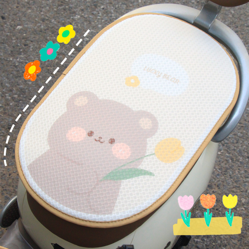 Mobil listrik bantal sepeda motor musim panas pelindung matahari anti melepuh cepat kering Universal kartun lucu Dewi Tulip beruang kelinci