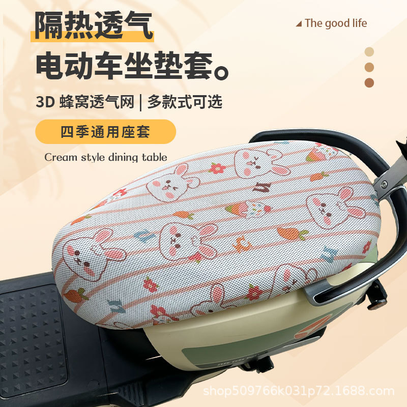 Sarung sadel sepeda motor pedal mobil listrik, sarung jok sepeda motor dengan insulasi panas, pelindung matahari bersirkulasi, penutup jaring sarang lebah mobil baterai, sepeda motor