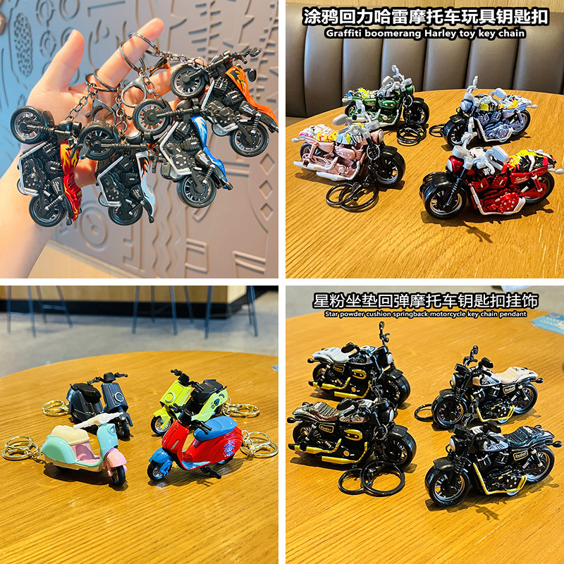 Kartun mini Harley sepeda motor listrik kecil sepeda keledai koleksi rebound mobil mainan mobil tas sekolah pelajar gantungan kunci